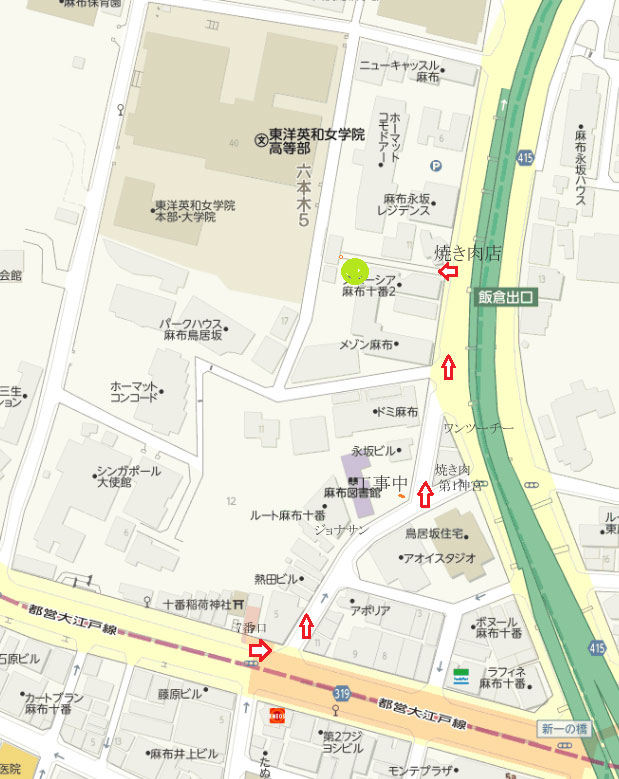 【道順】大江戸線からのお客様はこちらで 大江戸線麻布十番改札を出て左方面に7番出口があります。 ↓ ここも左へ進んでください。 ↓ 角に『ELE TOKYO』というお店があります。 ここも左折です。 ↓ これを左手に見ながら通過し。。。 ↓ Y字の交差点は左に。 万豚記というラーメン屋 さんの黄色い日除けを 目印に。 ↓ ![]() 右手に高速を見ながら、 緩やかな坂を上って。。。 高速を右手に見ながら 坂道を上ってください ↓ ![]() まだまだ上って~ 焼肉屋さんの角を左に曲がってください。 曲がるとこんな景色。 まっすぐ進んでください。 ↓ |