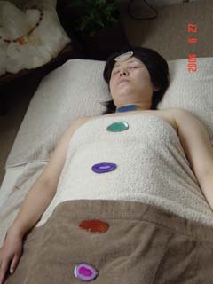 鍼・灸に加えクリスタルやパワーストーンを用いてチャクラやつぼを刺激していきます。指先をパワーストーンで刺激して経絡のつまりをとることで陰陽のバランスを整え内臓に正常な機能を取り戻させます。